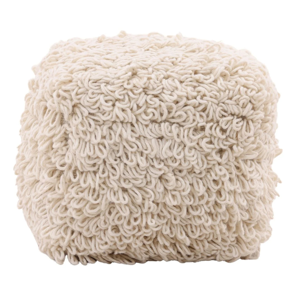Material: Twisted Looped WoolFinish: IvoryWidth: 16 inDepth: 16 inHeight: 16 inVolume: 2.5 cu ftWeight: 5.5 lbs