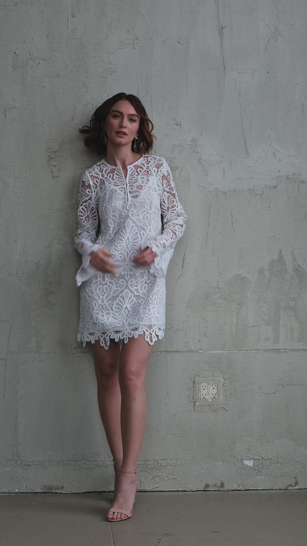 Graceful, flattering Magnolia is an elegant sheath crafted from imported lace with delicate scalloped hem and removable matching slip and hook and eye options.