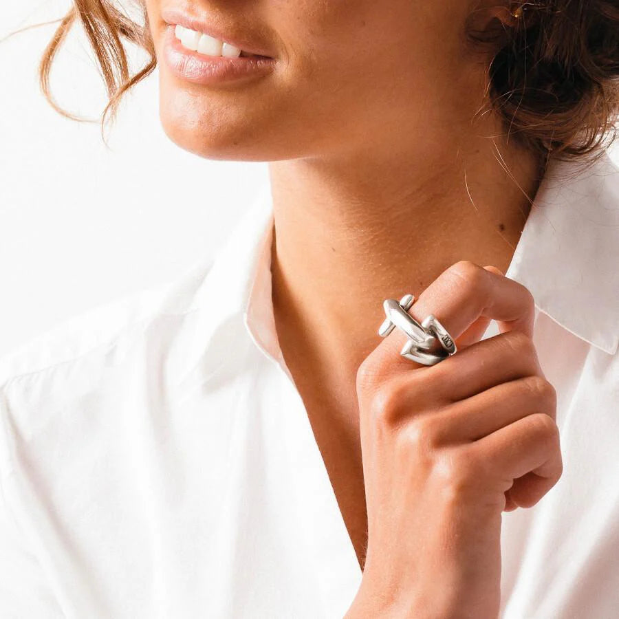 This exquisite mini ring from CXC is a standout piece with its unique drawbridge design. Crafted from brass, it radiates elegance and sophistication. As a fine jewelry item, it comes with a warranty and is imported. Its sleek and contemporary structure. Each piece of jewelry by CXC is designed and handcrafted in our workshop in Spain.